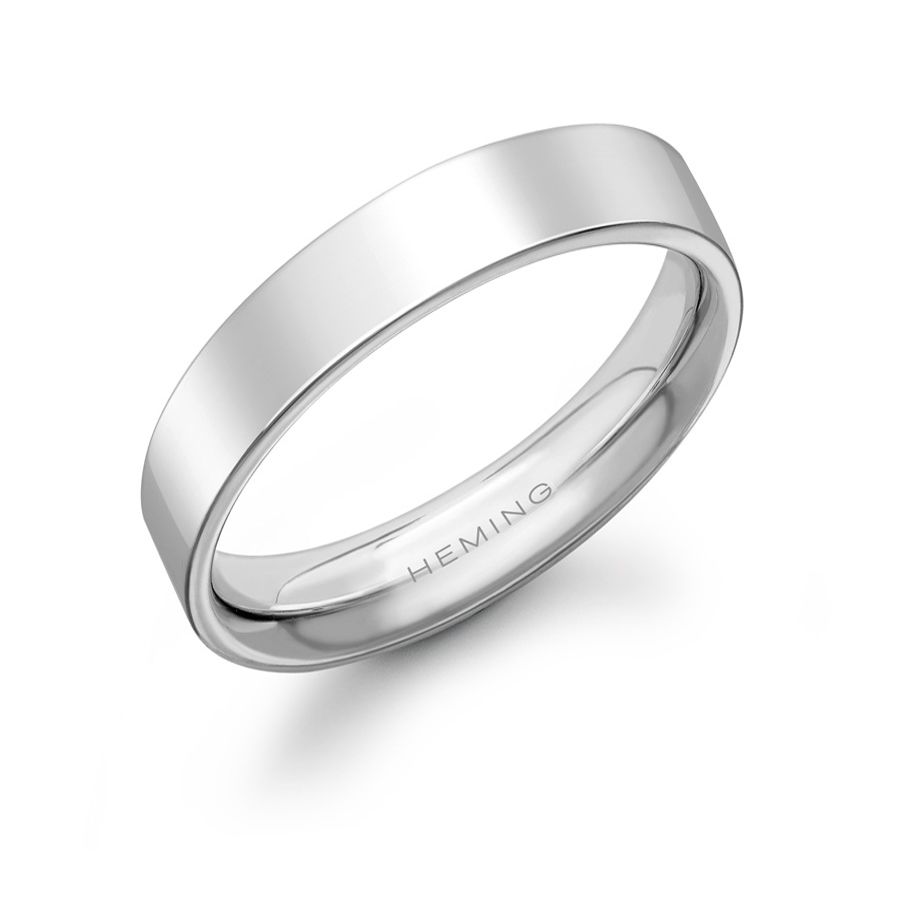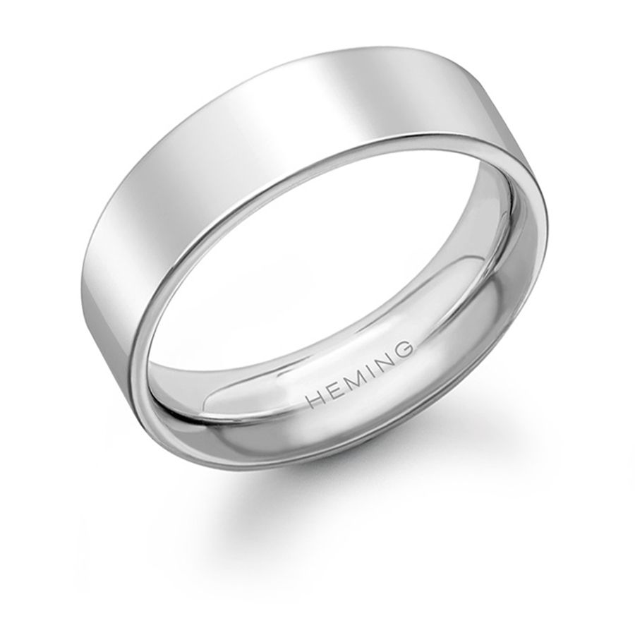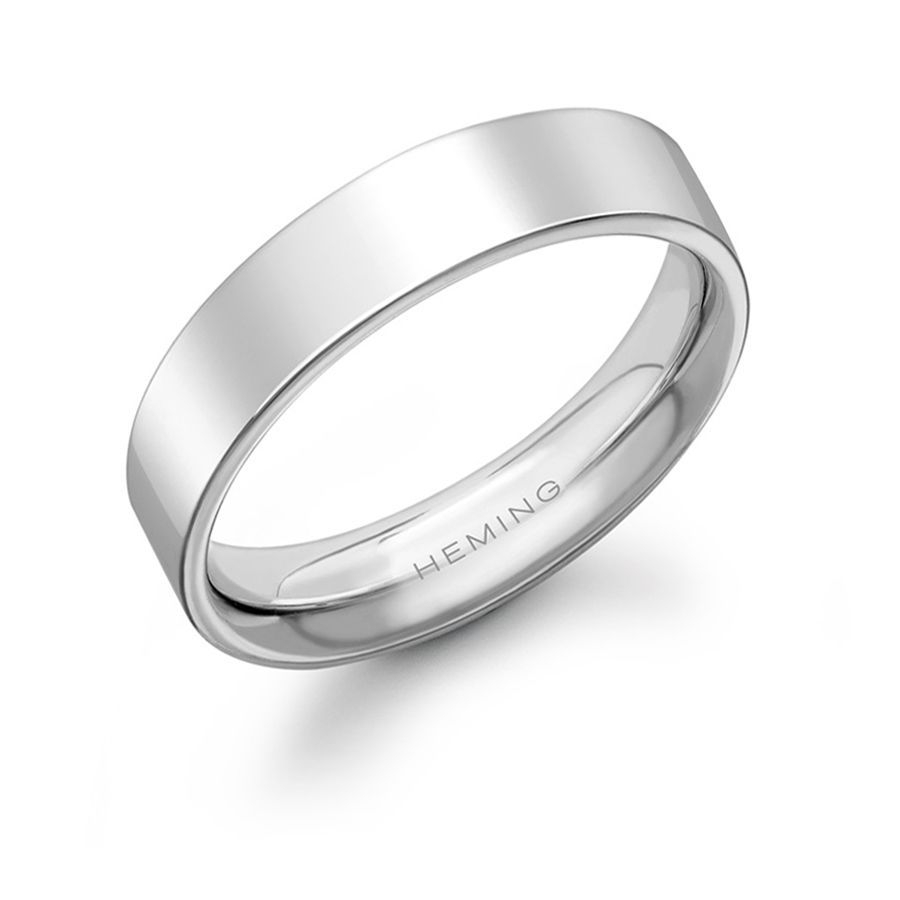 The Heming ' Flat Court Shaped' wedding ring is a contemporary design with a rectangular engineered profile, manufactured and hand finished in our London workshops. The contoured interior ensures lasting comfort and wearability. Available in widths from 2mm to 8mm.