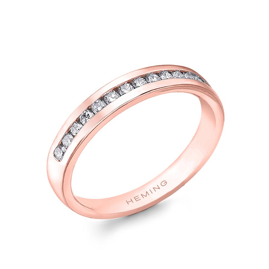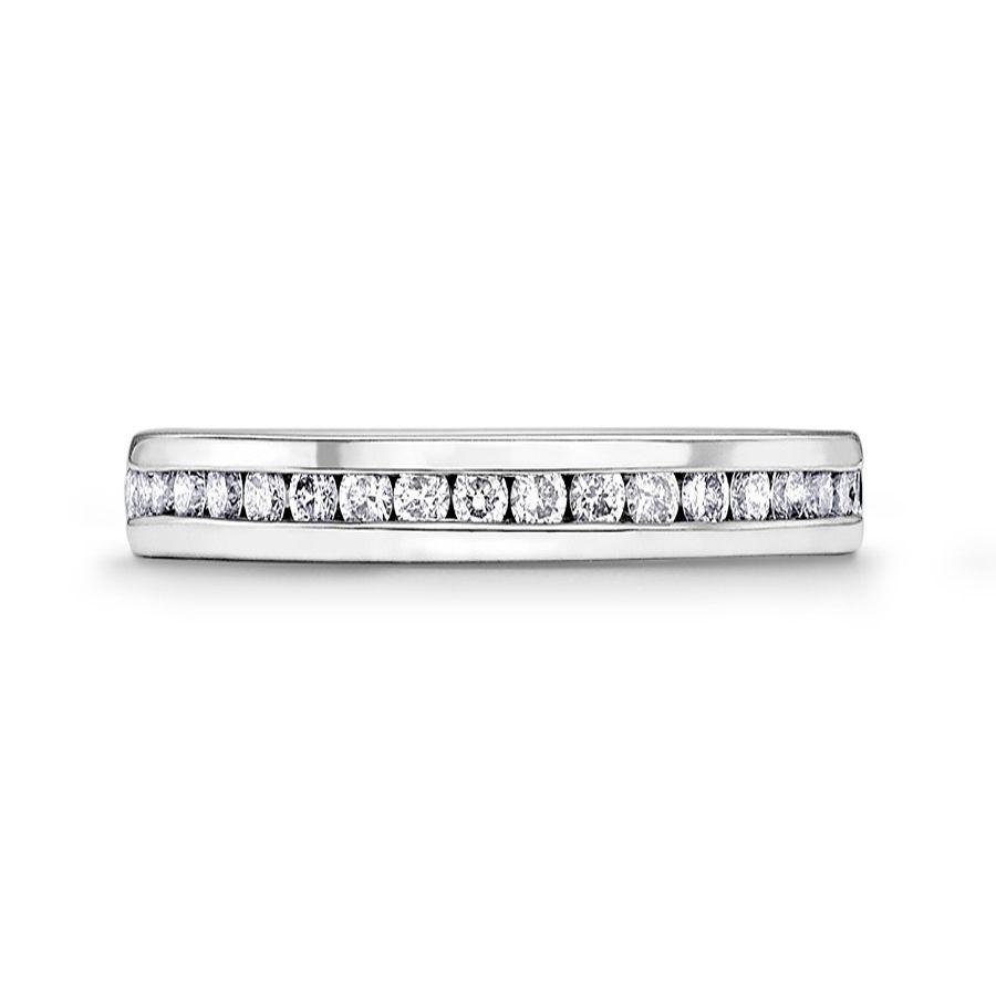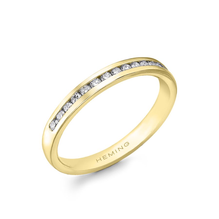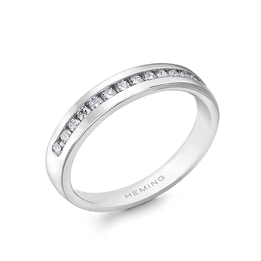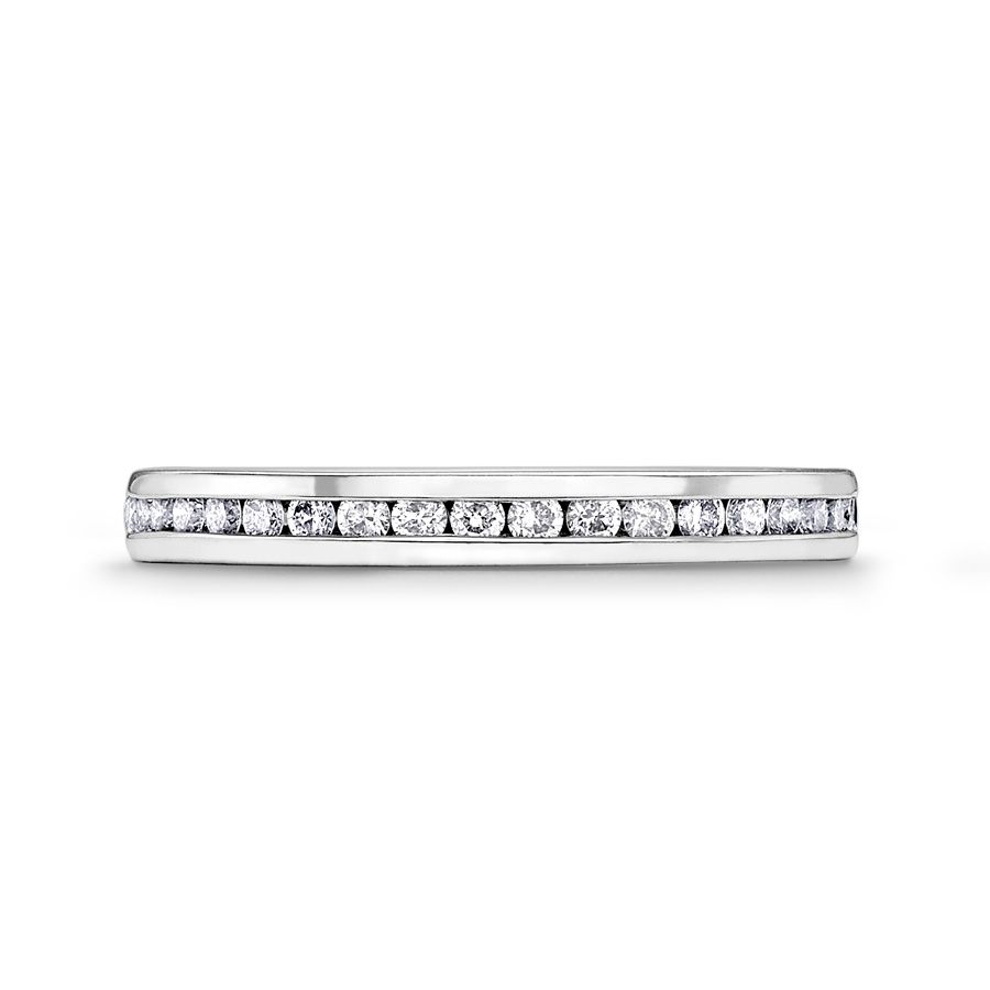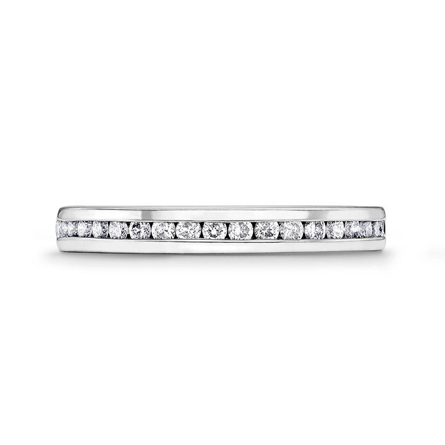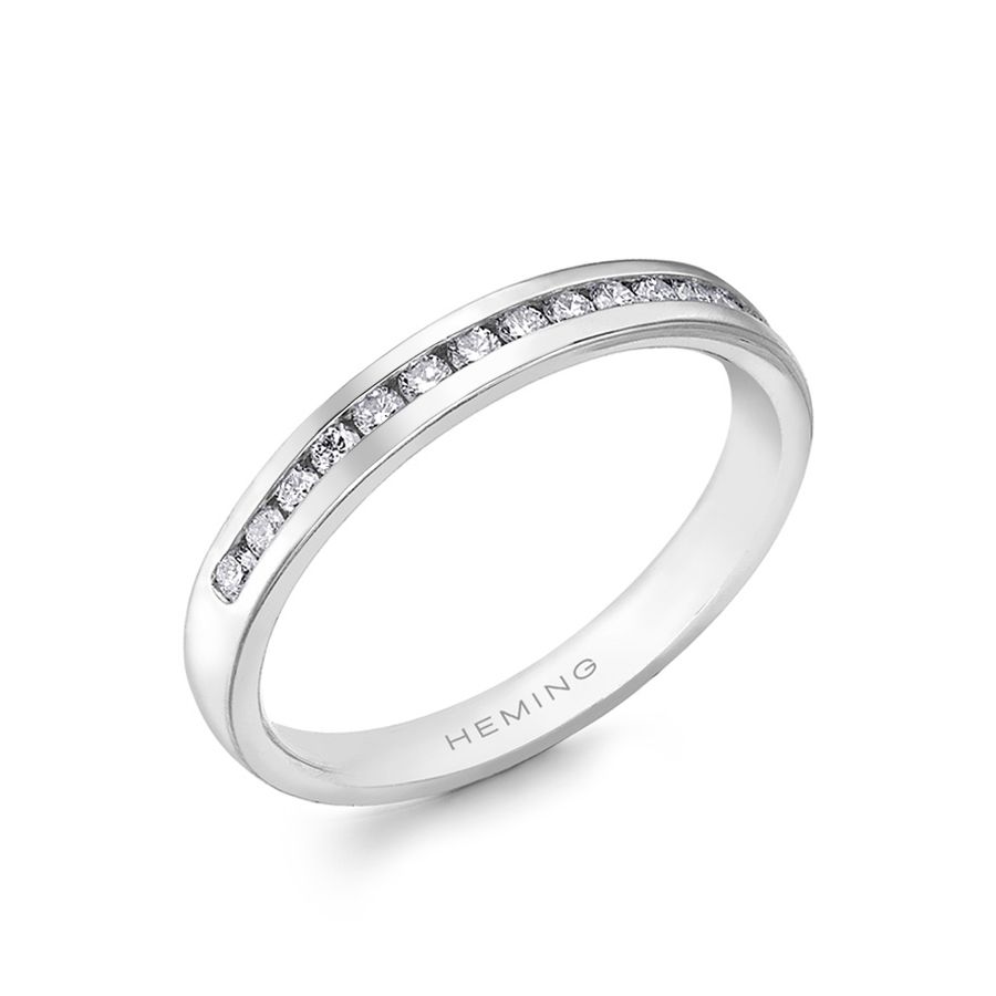 Heming's Lichfield design is a more contemporary style half eternity ring, channel set with round brilliant cut diamonds, combined weight 0.21-0.42ct dependent on finger size and bandwidth. Manufactured and hand finished in our London workshops, the contoured interior ensures lasting comfort and wearability. Available in widths of 2mm, 2.5mm or 3mm and your choice of precious metal. Full eternity versions of the Lichfield style, set with diamonds all around the finger, are also popular and available upon request.