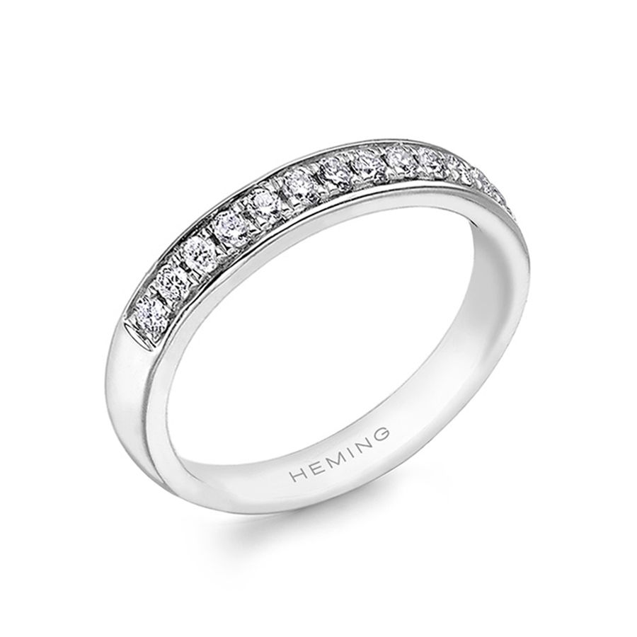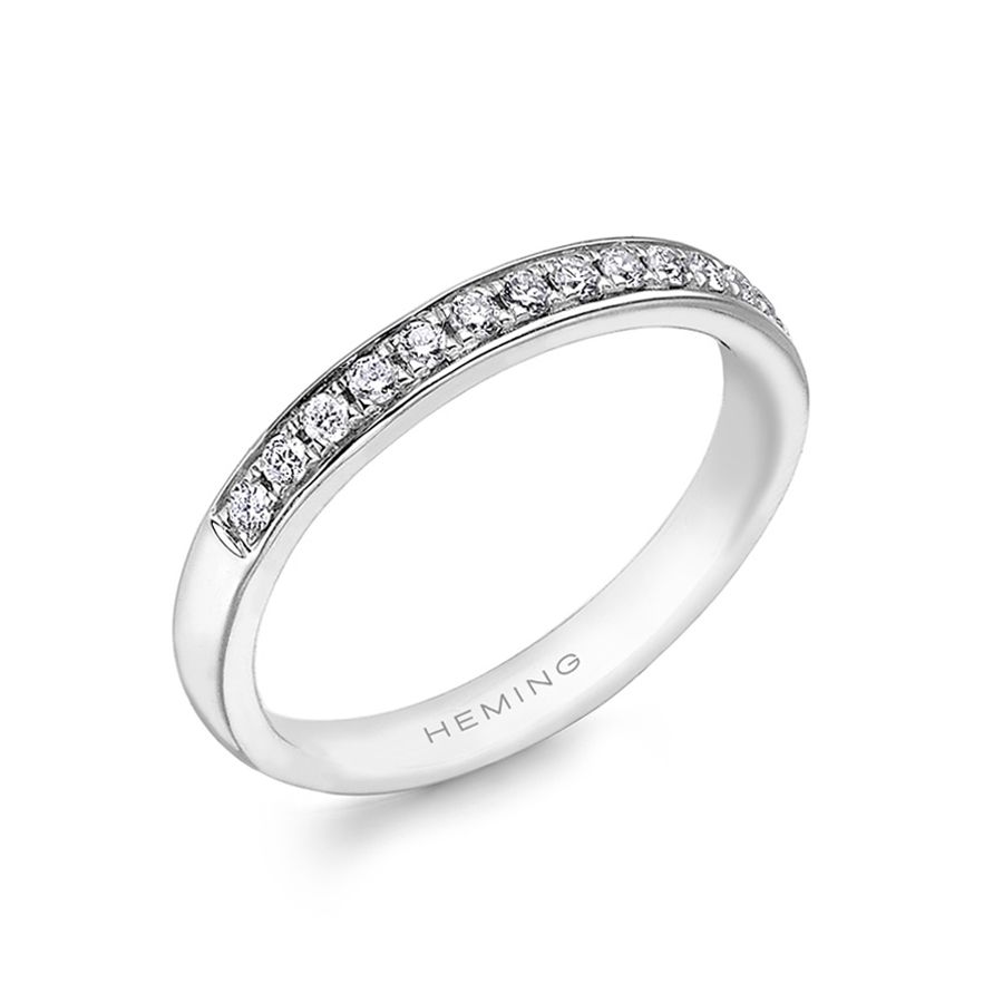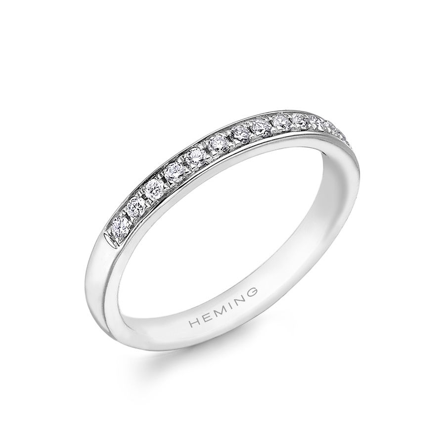 Heming's Winchester design is a classic half eternity ring, grain set with round brilliant cut diamonds, combined weight 0.15-0.30ct dependent on finger size and bandwidth. Manufactured and hand finished in our London workshops, the contoured interior ensures lasting comfort and wearability. Available in widths of 2mm, 2.5mm or 3mm and your choice of precious metal. Full eternity versions of the Winchester style, set with diamonds all around the finger, are also popular and available upon request.